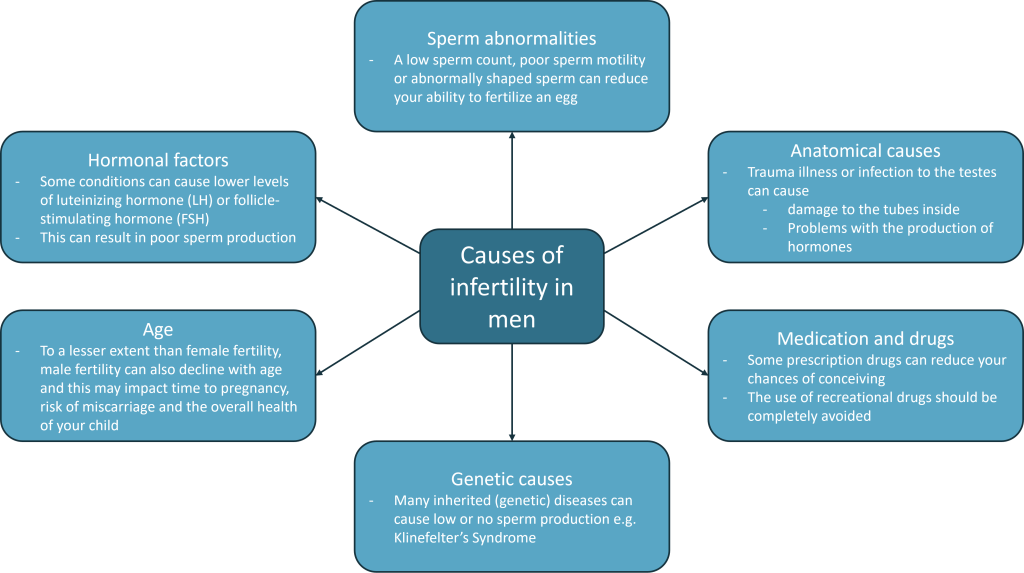 To understand more about the treatments available, we first have to review your medical history to see what the cause of the problem is.[/TS-VCSC-Icon-Box-Tiny][/vc_column][vc_column width=”1/2″][TS-VCSC-Icon-Box-Tiny style=”boxed_left” box_background_color=”” padding_custom=”true” padding_outside=”40″ title_wrap=”h5″ font_title_family=”Default:regular” title_size=”14″ title_color=”#46b4cd” title_align=”left” title_spacing=”0″ font_content_family=”Default:regular” line_height=”18″ icon_size_slide=”16″ icon_padding=”0″ el_class=”nocres”]This may be as simple as helping you to eliminate any known risk factors to enable you to lead a healthier lifestyle, or it could require diagnosing and treating an unknown or existing medical condition which has been affecting your natural ability to conceive or carry a pregnancy successfully to term.[/TS-VCSC-Icon-Box-Tiny][/vc_column][/vc_row][vc_row full_width=”stretch_row” el_class=”IntroBoxesRowBlueTop”][vc_column el_class=”ServiceIntrobox”][vc_custom_heading text=”Male factor causes:” font_container=”tag:h2|text_align:center|color:%23ffffff”][vc_separator color=”peacoc”][vc_column_text][/vc_column_text][/vc_column][/vc_row][vc_row full_width=”stretch_row” el_class=”IntroBoxesRow”][vc_column el_class=”ServiceIntroboxLeftBlue”][vc_custom_heading text=”Female factor causes:” font_container=”tag:h2|text_align:center|color:%2346b4cd”][vc_empty_space][vc_column_text][/vc_column_text][/vc_column][/vc_row][vc_row full_width=”stretch_row” el_class=”IntroBoxesRowBlueTop”][vc_column el_class=”ServiceIntroboxLeftBlue”][vc_custom_heading text=”Other Factors – Your Lifestyle” font_container=”tag:h2|text_align:center|color:%23ffffff”][/vc_column][/vc_row][vc_row full_width=”stretch_row” el_class=”IntroBoxesRowBlueTop”][vc_column width=”1/2″ el_class=”ServiceIntroboxLeftBlue”][TS-VCSC-Icon-Box-Tiny style=”boxed_left” box_background_color=”” padding_custom=”true” padding_outside=”40″ title=”Weight” title_wrap=”h5″ font_title_family=”Default:regular” title_size=”14″ title_color=”#ffffff” title_align=”left” title_spacing=”0″ font_content_family=”Default:regular” line_height=”18″ icon_size_slide=”16″ icon_padding=”0″ el_class=”yellcres”]Being overweight or obese (with a BMI of greater than 30), or severely underweight (with a BMI of less than 18.5) can cause issues with ovulation in women as weight – at any extreme, is recognised to have an impact on the regularity of your periods. For men, being severely overweight can lead to a general decrease in libido and ultimately is known to impact the quality of semen produced.[/TS-VCSC-Icon-Box-Tiny][/vc_column][vc_column width=”1/2″ el_class=”ServiceIntroboxRightBlue”][TS-VCSC-Icon-Box-Tiny style=”boxed_left” box_background_color=”” padding_custom=”true” padding_outside=”40″ title=”Smoking” title_wrap=”h5″ font_title_family=”Default:regular” title_size=”14″ title_color=”#ffffff” title_align=”left” title_spacing=”0″ font_content_family=”Default:regular” line_height=”18″ icon_size_slide=”16″ icon_padding=”0″ el_class=”yellcres”]Smoking can affect a woman’s fertility by reducing her chance of conceiving and can also increase the risk of miscarriage. For men, toxins in cigarettes are widely known to have an adverse effect on the quality of their sperm as smoking can increase DNA damage.[/TS-VCSC-Icon-Box-Tiny][/vc_column][/vc_row][vc_row full_width=”stretch_row” el_class=”IntroBoxesRowBlueTop”][vc_column width=”1/2″ el_class=”ServiceIntroboxLeftBlue”][TS-VCSC-Icon-Box-Tiny style=”boxed_left” box_background_color=”” padding_custom=”true” padding_outside=”40″ title=”Alcohol” title_wrap=”h5″ font_title_family=”Default:regular” title_size=”14″ title_color=”#ffffff” title_align=”left” title_spacing=”0″ font_content_family=”Default:regular” line_height=”18″ icon_size_slide=”16″ icon_padding=”0″ el_class=”yellcres”]For women, drinking high quantities alcohol can affect your chances of conceiving naturally and may also have a negative effect on a pregnancy, whilst for men, drinking excessive alcohol can lower testosterone levels, sperm quality and quantity as well as possibly reducing libido and causing impotence.[/TS-VCSC-Icon-Box-Tiny][/vc_column][vc_column width=”1/2″ el_class=”ServiceIntroboxRightBlue”][TS-VCSC-Icon-Box-Tiny style=”boxed_left” box_background_color=”” padding_custom=”true” padding_outside=”40″ title=”Medications” title_wrap=”h5″ font_title_family=”Default:regular” title_size=”14″ title_color=”#ffffff” title_align=”left” title_spacing=”0″ font_content_family=”Default:regular” line_height=”18″ icon_size_slide=”16″ icon_padding=”0″ el_class=”yellcres”]Long term use of certain medications can have a disruptive effect the reproductive organs and may lead to issues with ovulation and the quality/quantity of sperm produced.[/TS-VCSC-Icon-Box-Tiny][/vc_column][/vc_row][vc_row full_width=”stretch_row” el_class=”IntroBoxesRowBlueTop”][vc_column width=”1/2″ el_class=”ServiceIntroboxLeftBlue”][TS-VCSC-Icon-Box-Tiny style=”boxed_left” box_background_color=”” padding_custom=”true” padding_outside=”40″ title=”Environmental” title_wrap=”h5″ font_title_family=”Default:regular” title_size=”14″ title_color=”#ffffff” title_align=”left” title_spacing=”0″ font_content_family=”Default:regular” line_height=”18″ icon_size_slide=”16″ icon_padding=”0″ el_class=”yellcres”]Long-term extensive exposure to certain toxins, pesticides, chemicals and metals used in the workplace or even present in the surrounding environment can affect your 